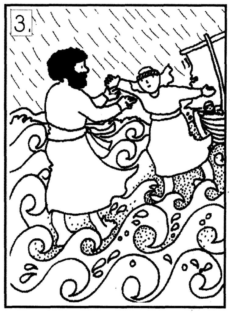 Peter started sinking when he looked at the storm instead of looking at Jesus, but Jesus took Peter’s hand and helped him back into the boat.