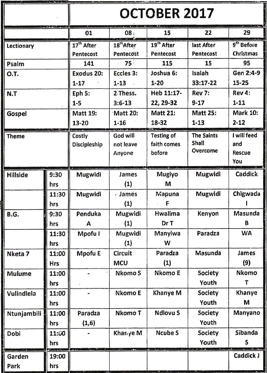 Preaching plan for Oct 2017